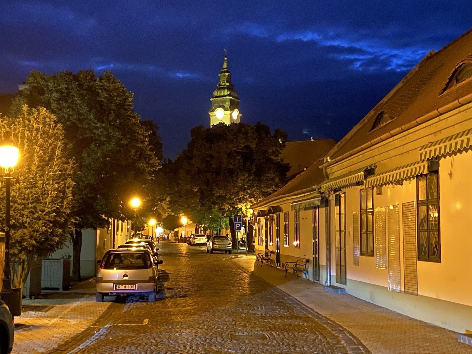 Nun, es ist jetzt kurz nach Halbzehn - da war der Wunsch wohl Vater des Gedanken. Als ich mich vor zwei Stunden zum Pool aufgemacht habe, war dieser, wie erwartet hell beleuchtet ... das Restaurant war aber geschlossen. Dann gibt es also einen abendlichen Stadtspaziergang mit netten Bildchen, soll auch sein ;-). Ich denke nicht, dass Ungarn nach 20 Uhr eine Ausgangssperre hat, zumindest habe ich nichts in dieser Richtung gefunden, es fühlt sich aber so an. Es muss wohl daran liegen, dass spätestens um 20 Uhr die Bürgersteige hochgeklappt werden und kaum ein Mensch mehr auf der Straße anzutreffen ist. Fast kein Mensch - ich habe noch ein tschechisches Pärchen entdeckt, die auch im Thermalbad waren und in einem Restaurant zu sehr späten Stunde noch etwas Essen waren. An einem Nachbartisch habe ich mit ihnen noch gemeinsam ein Bier (ich), sie einen Wein getrunken. Die Bilder unten sind eindrucksvoll, doch mit Bratislava verglichen, wo ich um 23 Uhr nichts mehr ausgeschenkt bekam, sehr verlassen. Dieser Ort ist wohl nicht der typische Touristenort, auch wenn vor "meinem" Hotel Autokennzeichen aus Schweden, Niederlande, Österreich, Deutschland, Slowakei und natürlich Ungarn zu finden sind. Warum dies möglicherweise so ist, den Versuch einer Erklärung liefere ich morgen ;-) ...