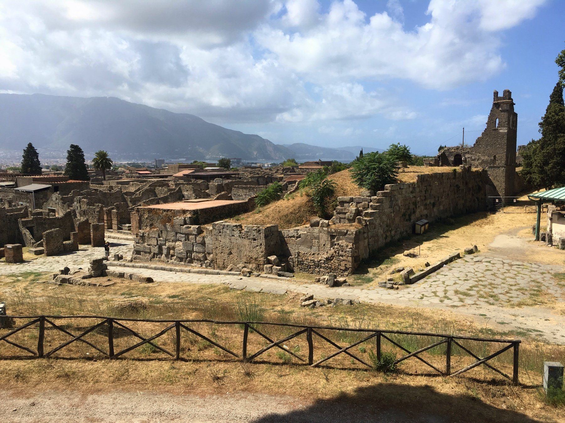 Der Vesuv, der heute frei von Wolken ist, auch die Feuer dürften mittlerweile alle gelöscht sein, ist allgegenwärtig.