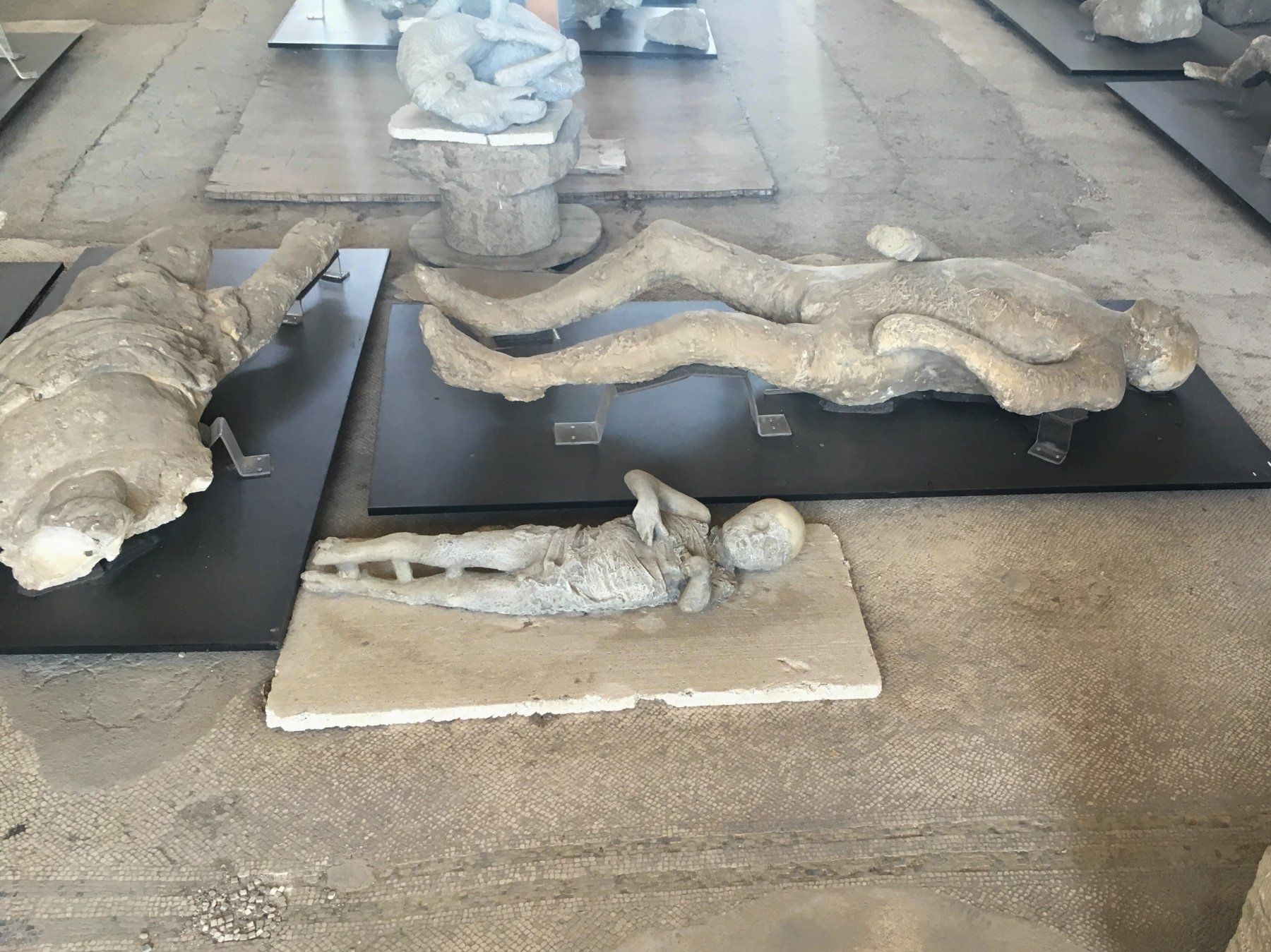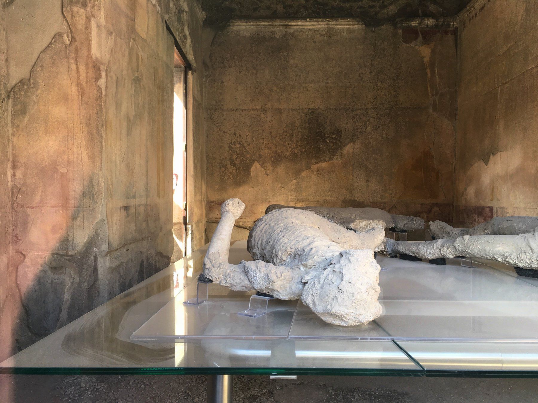 Und dann gibt es noch die ausgegrabenen Menschen, die diese Katastrophe vollkommen unvorhergesehen überrascht hat. Die ersten ausgegrabenen und wiederhergestellten Körper sowie Körper, die erst in jüngster Zeit sehr gründlich freigelegt wurden. An vielen Stellen sind Mitarbeiter am Werken, die mit weiteren Ausgrabungen beschäftigt sind.