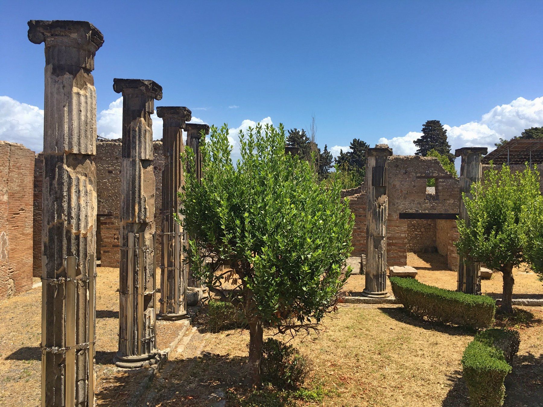 Oben angekommen hat es erfrischende 26° - ich überlege kurz, ob ich mir bei 15 Grad Temperaturunterschied vielleicht doch den Pullover überstreife - aber es geht ja bald wieder nach unten und es wird wieder deutlich wärmer. Zwar keine 41° aber so 32°. Zwischenzeitlich lege ich zwei ausgedehnte Pausen ein und komme dann gegen 16 Uhr in Pompei bei 28° an - im Grunde genau das, was ich mir als Ankunftszeit für diesen Tag vorgenommen habe.