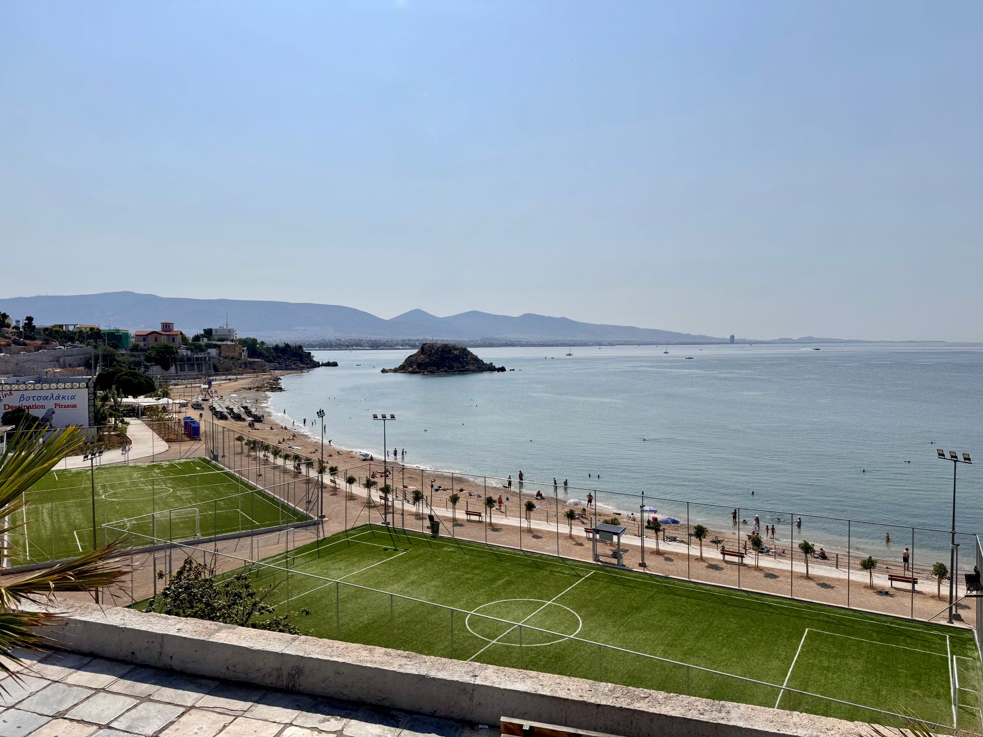 Noch ein wenig herumgeschlendert und ich gehe den Hügel hinunter zu dem Busstopp von gestern, eine Beach Tour mit dem Hop-on-hop-off Bus wäre jetzt nett. An den Strand und dort ein wenig Relaxen und mit dem nächsten Bus dann wieder weiter. Allerdings fährt der nächste Bus erst um 11, sodass ich quer durch den Nationalgarten zum Panathinaikon Stadion gehe. Auf dem Weg dorthin, bevor ich die alten Stätten besuche werde , komme ich an neueren Trainingsstätten vorbei - was muss dass für ein Gefühl sein, mit Blick auf die Akropolis trainieren zu dürfen ... Der Besuch des historischen Stadions ist im Akropolis Ticket inbegriffen.
