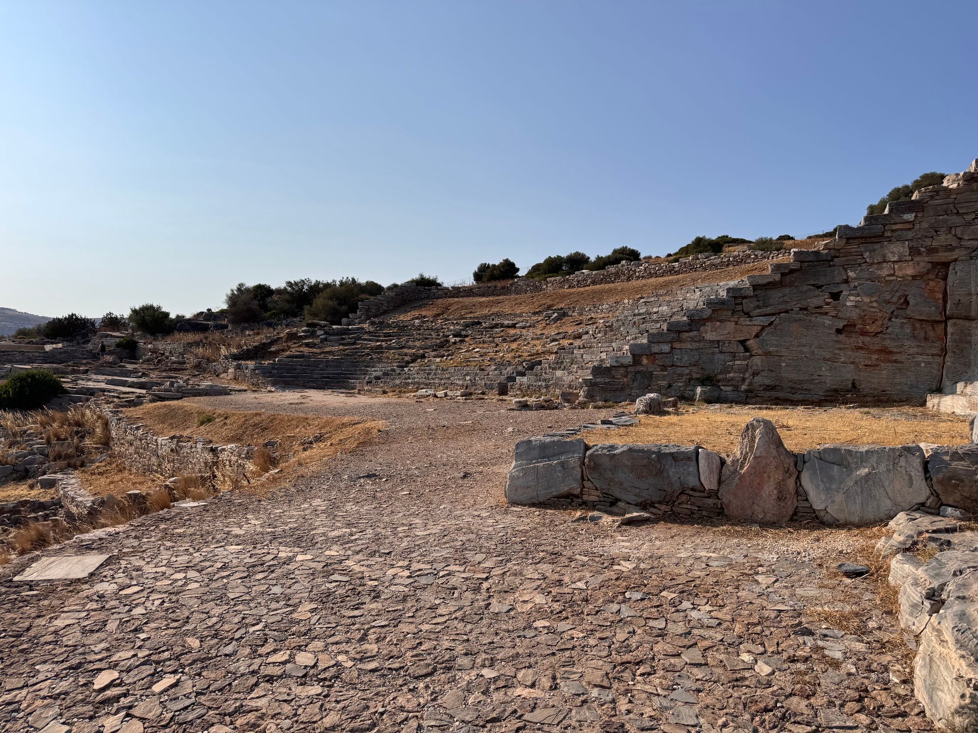 Ein Zwischenstopp führt uns zu einem sehr sehr unscheinbaren Theater, dies hat es aber ordentlich "in sich" - "Das Theater von Thorikos ist ein griechisches Theater im antiken Demos Thorikos, nördlich des heutigen Lavrio in Attika gelegen. Es ist eines der ältesten bekannten griechischen Theater und wurde etwa um 500 v. Chr. erbaut. Das Theater ist in seiner Gestaltung ungewöhnlich, da es statt einer später üblichen kreisförmigen eine querliegend U-förmige Orchestra besitzt. Entsprechend sind die das ansteigende Gelände nutzenden Zuschauerreihen geradlinig gestaltet und lediglich an den Seiten kurvig geführt." Wikipedia, 10.6.2025
