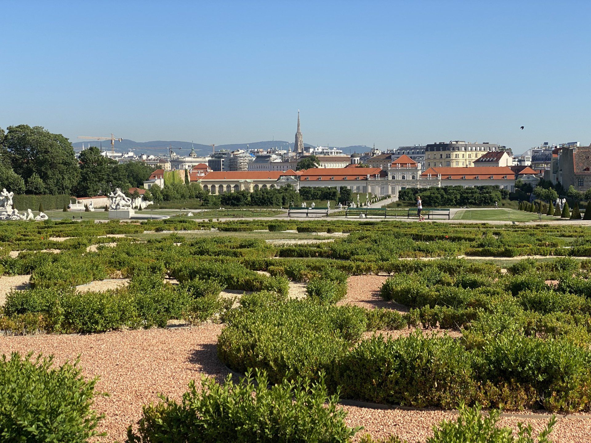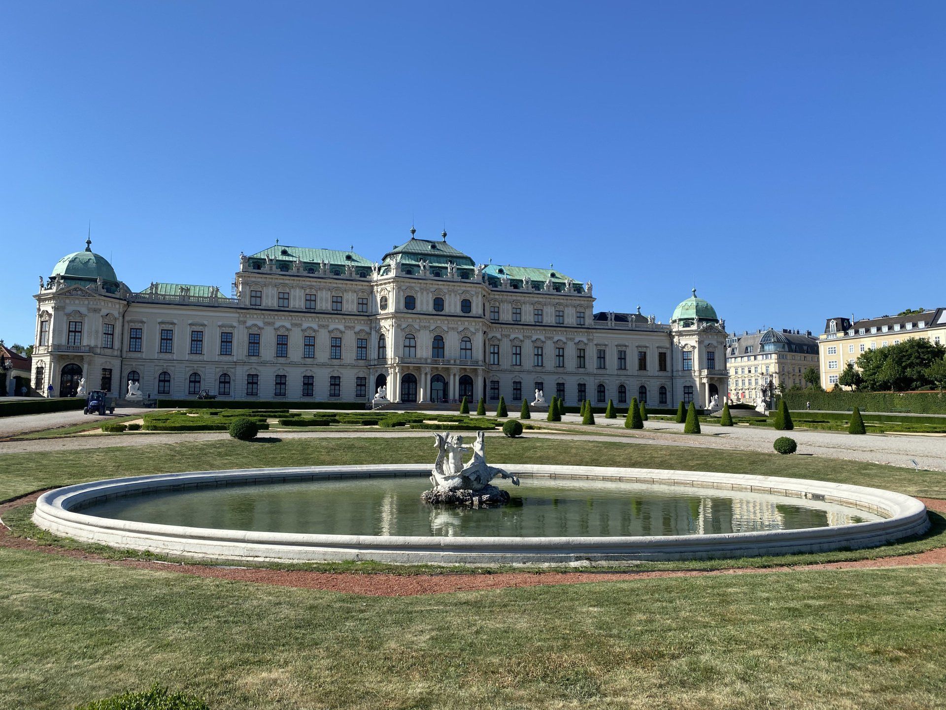 Es warten 4 Wochen und 4 Tage On-the-Road auf mich, also dann los. Die heutige Drei-Schlösser-Tour wird mich zum Schloss Belvedere, Schloss Laxenburg und Schloss Esterházy führen. Zunächst geht es auf dem Donauradweg bis Wien (mein täglicher Weg zur Arbeit), bei der Urania fahre ich hinauf zum Ring und erreiche wenig später das Belvedere. Nachdem ich dieses bereits letztes Jahr auf meiner Radtour Passau - Wien besichtigt habe, werden nur ein paar Außenaufnahmen "geschossen". Die zwei Bilder von Klimt "Der Kuss", welches eines meiner Lieblingsbilder ist, zeige ich trotzdem nochmal. Es war letztes Jahr schon sehr beeindruckend, dieses Bild in dem Ausstellungsraum alleine betrachten zu dürfen, ohne der sonst üblichen Menschentraube. Das Wetter ist super zum Fotografieren, selbst in der Früh tiefblauer Himmel, echt der Wahnsinn.