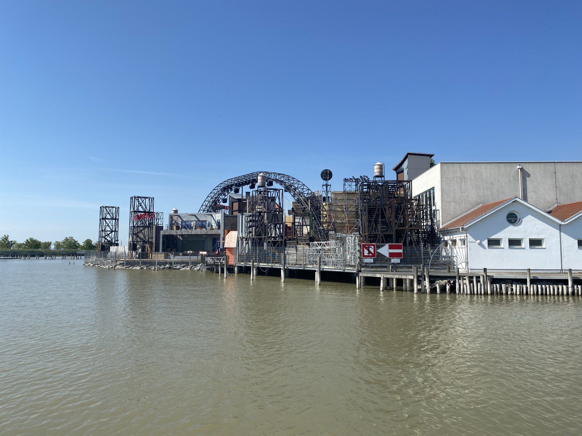 Direkt nach dem Verlassen des Hafens haben wir einen Blick auf die Rückseite der Seebühne, die ihren Betrieb im August wieder aufnimmt.