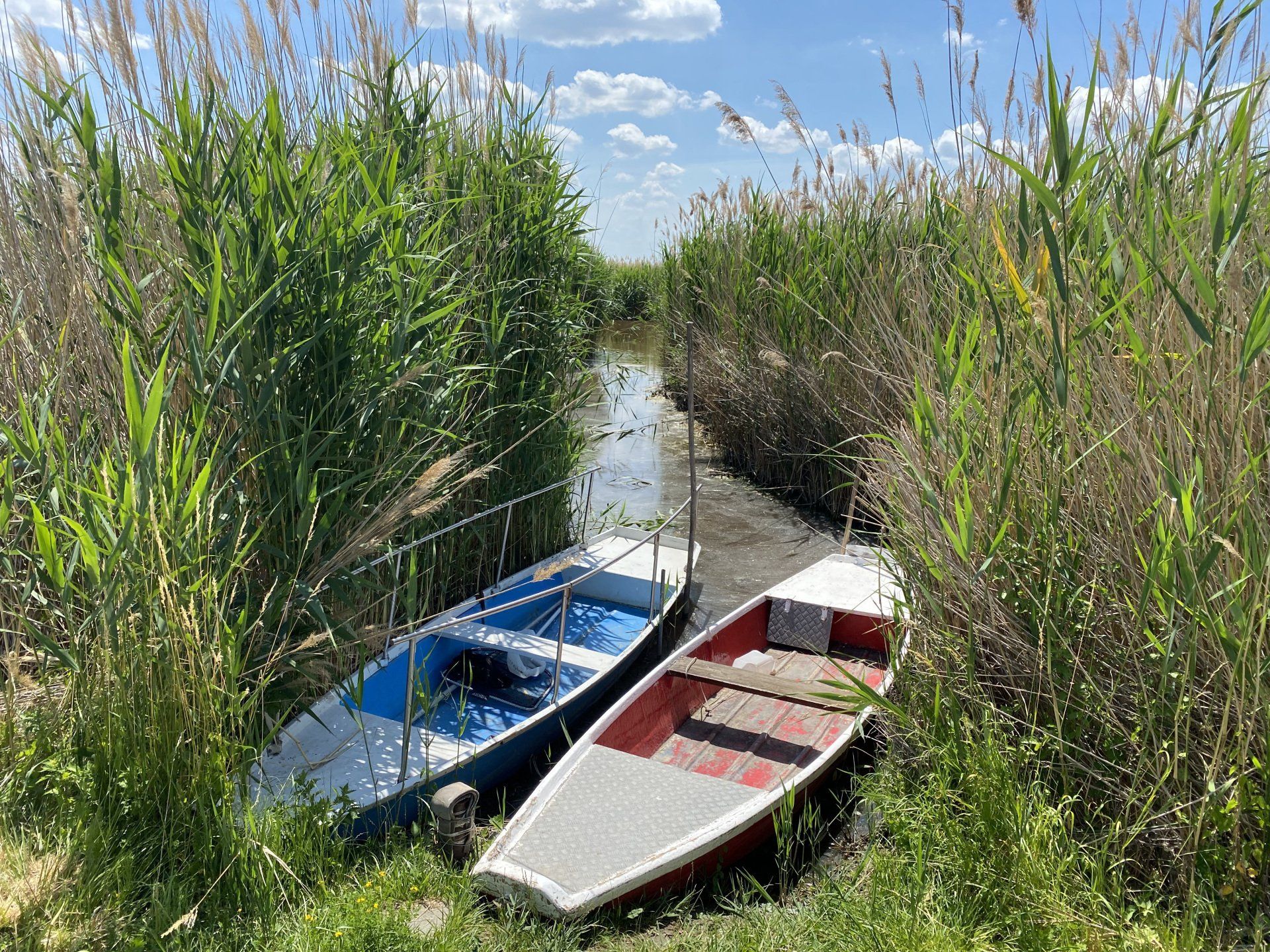 Der heutige Tag verspricht wieder sehr heiß zu werden, daher überlege ich mir, einen etwas kühleren Vormittag/Mittag zu nutzen, bevor es dann am Nachmittag herunterbrunzelt. Ich trinke noch einen Kaffee, esse mein von gestern übrig gebliebenes Käsebrot und mache mich dann auf den Weg zur Tourismusinformation, um meine Gästeanmeldung in die Gästekarte zu tauschen. Von dort geht es weiter zum Hafen von Mörbisch, wo ich ein Ticket für mein Rad löse (ich koste nichts, denn ich habe ja die Gästekarte, nur mein Rad muss zahlen 😉) und nehme die Fähre, um nach Illmitz zu gelangen. Der Radweg zum Hafen, an beiden Seiten entlang der Straße, führt durch das Schilf, es ist so ungefähr zwei Meter hoch. An einigen Stellen sind direkt am Weg Boote festgemacht. Am Fährhafen warten schon einige Radler auf die Überfahrt, dies dürfte eine sehr beliebte Strecke/Abwechslung sein - schließlich gehört die Überquerung des Sees an dieser Selle zur Tour der Umrundung des Neusiedler Sees. Die Überfahrt dauert 20 Minuten und die Informationen zum Neusiedler See, die der Kapitän erzählt, sind interessant. Der Neusiedler See hat eine Länge von 36 Kilometern und ist an der Stelle, wo wir ihn durchfahren gerade einmal 3 Kilometer breit. Dazu kommen dann noch 4 Kilometer Schilfgebiet, welches ja ebenfalls zum Gebiet des Neusiedler Sees gehört und einen wunderbaren Lebensraum für Vögel darstellt. Die Überfahrt dauert 20 Minuten und ich komme mit einem Ehepaar ins Gespräch - wir tauschen Gedanken über den Klimawandel aus. Ausgangspunkt der längeren Unterhaltung war die Aussage, wie lange es den Neusiedler See noch geben wird. Er ist mittlerweile ja sehr stark von der Austrocknung bedroht und tatsächlich ist die derzeit tiefste Stelle 1,7 Meter tief. Eigentlich unfassbar, an jeder Stelle des Neusiedler Sees kann man stehen, naja, wenn man ein wenig größer ist ...