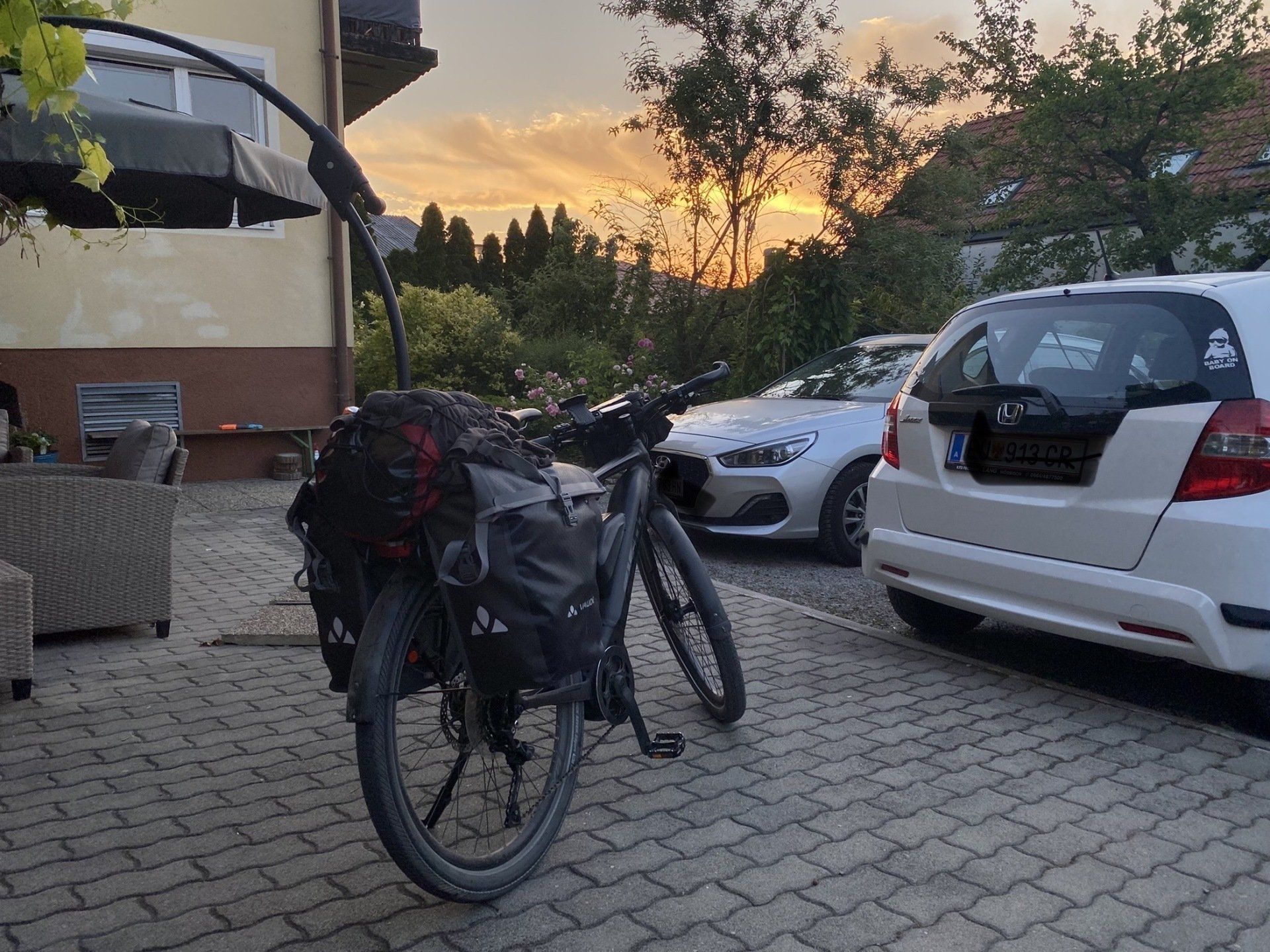 Freitag, 18.6.: 5:03 und die Schlafzimmerwand ist rot angeleuchtet - irgendwas stimmt da nicht, brennt es in der Nachbarschaft? Nein, es ist die aufgehende Sonne über dem Neusiedlersee, ein wunderschönes Bild über den Dächern am östlichen Rand von Mörbisch. Kurz aus dem Bett, ein Foto gemacht und dann noch ein Stündchen geschlafen. Übrigens bin ich nicht immer um diese Zeit wach 😄, doch hat mich das Vogelgezwitscher bei der geöffneten Balkontür geweckt. Das kenne ich ja von zu Hause.