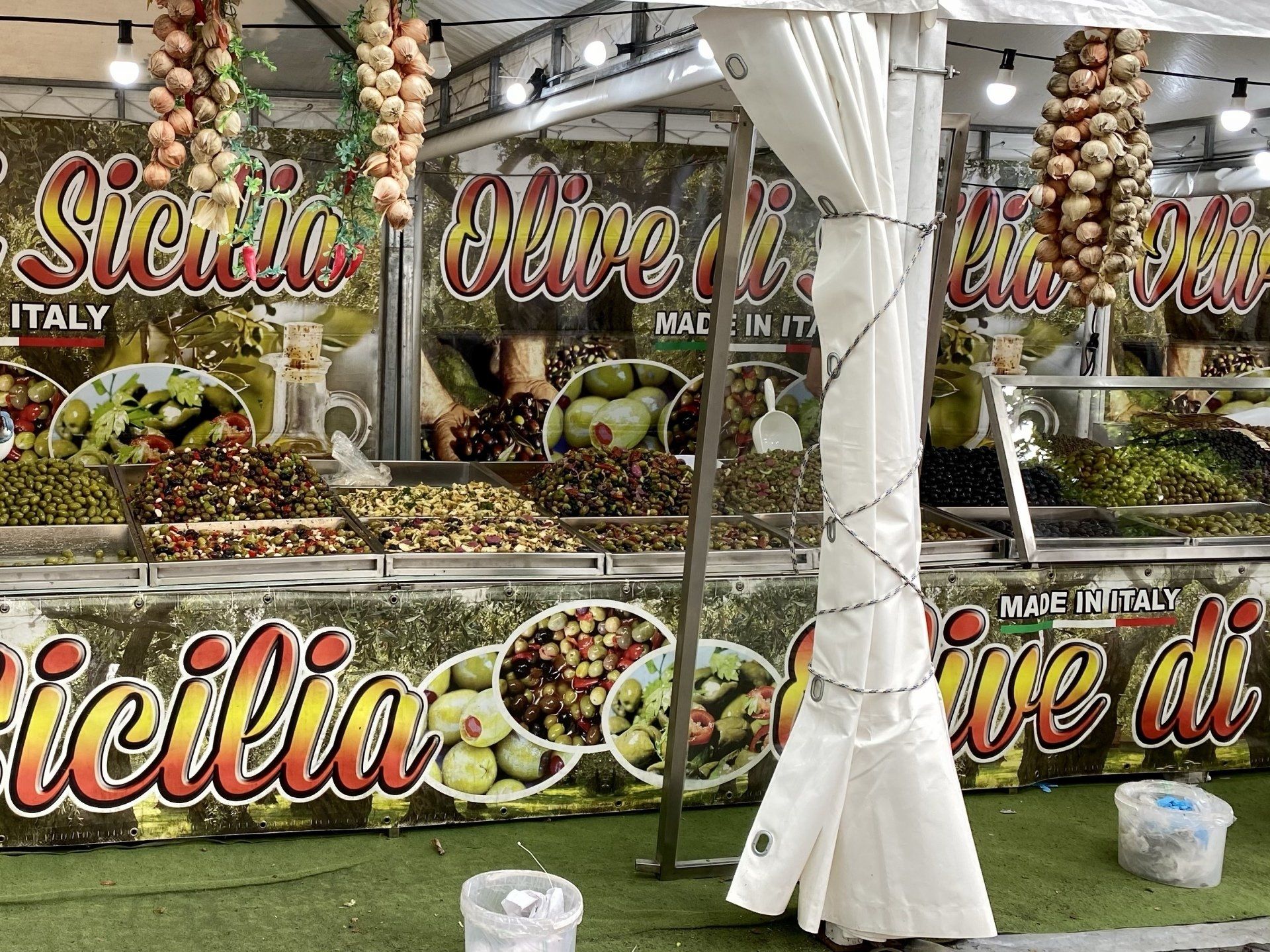 In der Mitte der Fußgängerzone befindet sich ein Markt, dieser bietet allem Anschein nach italienische Produkte an. Möglicherweise handelt es sich um einen wechselnden Markt unterschiedlicher Nationalitäten. Am Eingang des Marktes und da sind wir wieder bei Corona, gibt es eine Information zur Maskenpflicht bei entsprechendem Verkaufskontakt; weiters ist eine Händedesinfektion vorgeschrieben ... die Zeiten sind echt nicht lustig!