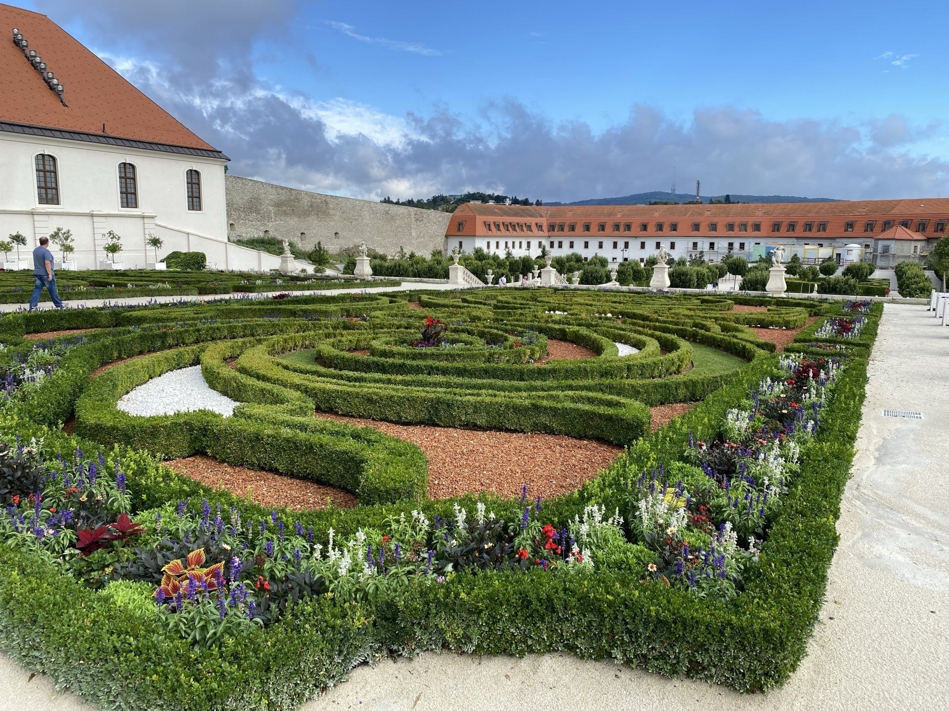 Die Burg ist von meinem Quartier aus, in nicht einmal fünf Minuten zu erreichen. Das Wetter hat sich deutlich gebessert, die Luft ist klar und die letzten Wolken verziehen sich gerade. Das nächtliche Gewitter hat doch die Luft deutlich gereinigt. Also los dann; zunächst geht es nochmals am neuen Parlament vorbei. Alexander Dubcek, der 1968 bis 1969 der mächtigste Politiker der Tschechoslowakei war und die Leitfigur des Prager Frühlings, ist hier, vor dem Parlament in einer Büste verewigt. Von der Terrasse des Parlaments genieße ich einen super Blick auf die Burg. Die Wolkenstimmung tut ihr Übriges. Der Burggarten ist sehr liebevoll angelegt, doch in seiner Größe nicht so weitreichend wie etwa der Schlossgarten des Belvederes.