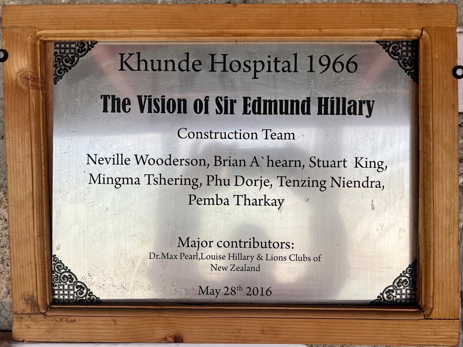 Gespannt warte ich in der Gaststube bei einem Black Tea auf das Erscheinen der Gruppe. Nach einer gefühlten Ewigkeit erscheinen Harka (ihr kennt ihn schon aus Kathmandu) und Mingma mit drei Damen. Wir stellen uns kurz vor und die drei Ladies (Silvia, Bettina, Steffi) und ich sind nach einem gemeinsamen Tee und der ersten Plauderei bald fertig zum Abmarsch in Richtung unseres heutigen Zielorts Phagding. Ein Gruppenbild (von li. : ich 😏, Silvia, Bettina, Steffi, Mingma, Harka) gemacht und es kann losgehen. Wir setzen uns langsam in Bewegung und erreichen nach wenigen Minuten den Ortsausgang von Lukla. Dieser ist von einem Tor gesäumt, welches an eine hiesige Bergsteigerin erinnert, die vom Mount Everest nicht mehr zurückgekommen ist. Ihr Haus befindet sich ebenfalls direkt neben dem Tor.