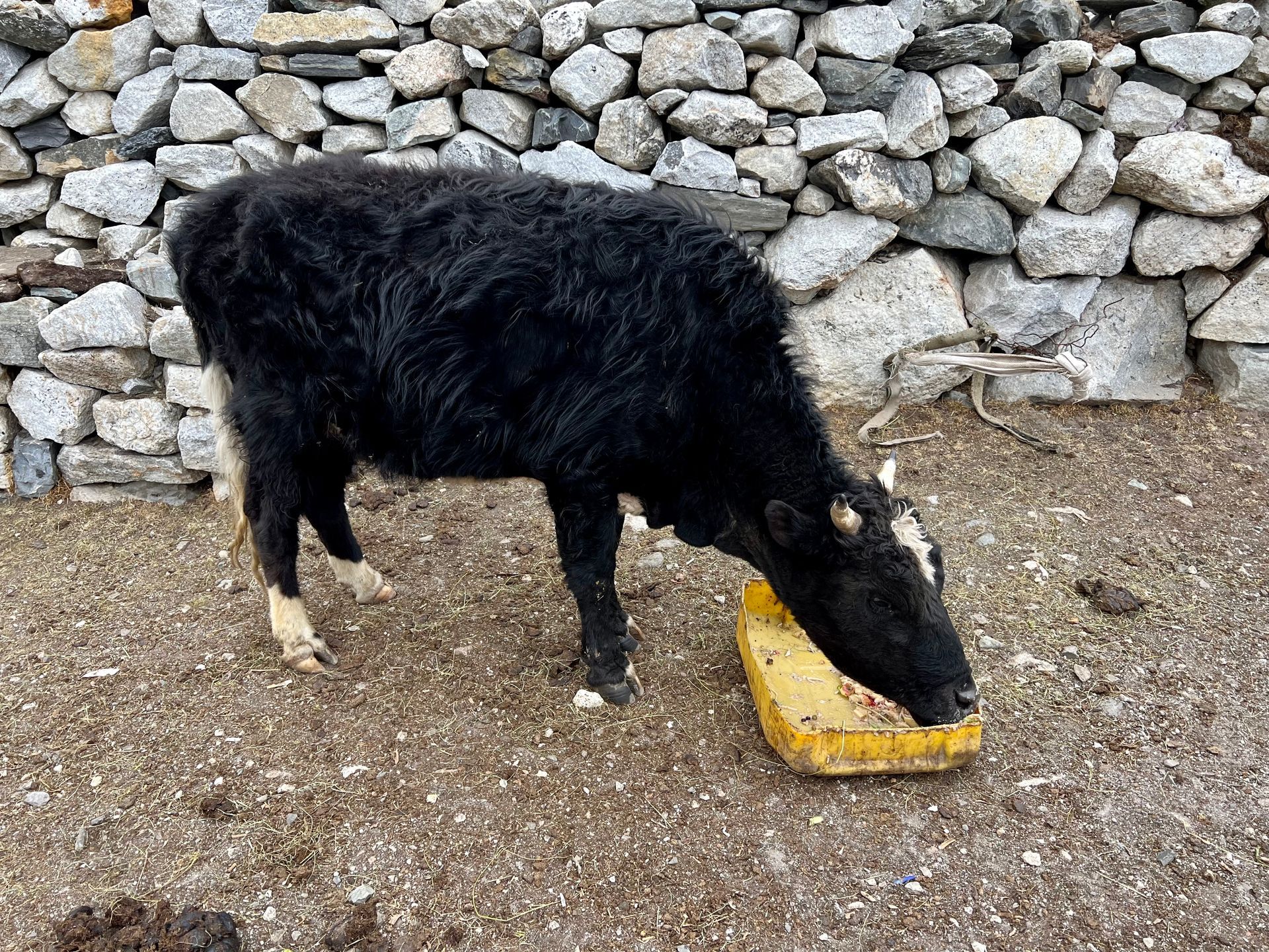 Wir wärmen uns an und mit einem Orange Tea und wenige Minuten später wird den hungrigen Mäulern das Mittagessen serviert. Auch Yaks haben Mittagspause 😏. Zimmer werden bezogen und es ist erst einmal etwas Ruhe angesagt. Ich nutze die Zeit und gehe zum See und zum "Einstiegspunkt" unser morgigen Wanderung; Hauptziel ist jedoch, Gokyo von der anderen Seite als Gesamtes ins Bild zu bekommen.