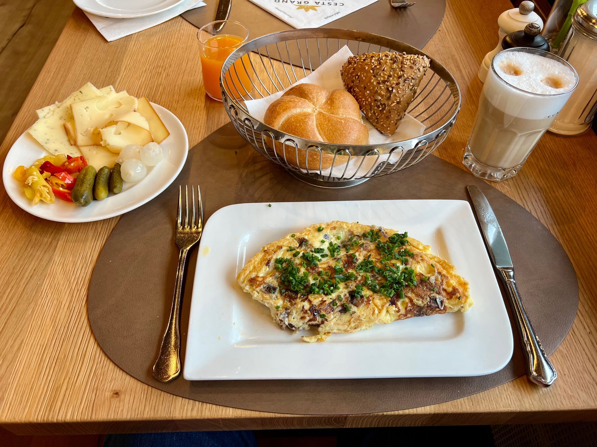 Miriam hat heute morgen ihre Fahrstunden, daher haben wir uns für Mittag verabredet. Ein Wellness Hotel hat ja doch auch was für sich; ich entschließe mich im Hotel eigenen Bad ein paar Längen zu schwimmen, im Endeffekt wird es dann eine halbe Stunde und gönne mir anschließend ein perfektes Frühstück. Es gibt so ziemlich alles, was ihr euch vorstellen könnt. Meine Frühstücksauswahl mit einem sehr liebevoll, frisch zubereitetem Omelett (die Zutaten kann man sich aussuchen) sehr ihr unten. Ich bin beim Frühstück eher nicht der "süße Typ" 😜, Peperoni und diverse andere Dinge sind da so eher meins.