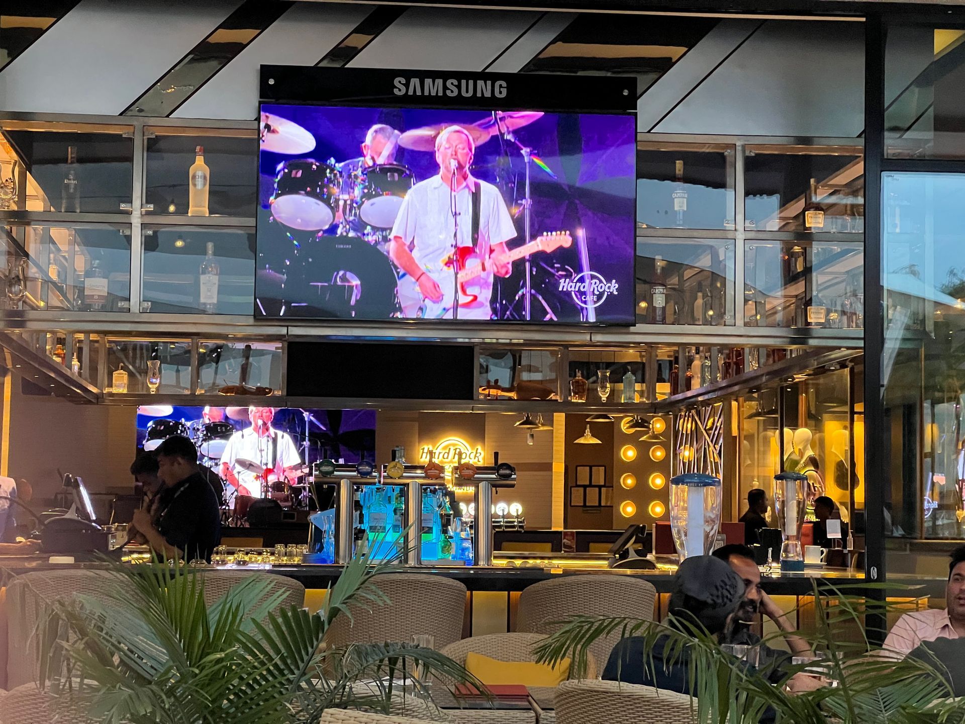 Hard Rock Cafés noch ein Kathmandu T-Shirt erstanden. Die T-Shirt Sammlung umfasst mittlerweile auch 36 Hard Rock T-Shirts aus so ziemlich allen Ecken der Welt - nennt mich verrückt, aber die Sammlung ist trotzdem nett 😉. Das Abendessen wir aufgelockert durch eine angeregte Plauderei mit dem Geschäftsführer, der sehr an meinem Herkunftsland interessiert ist und durch die Musik über die riesigen Screens (ich mag Eric Clapton sehr (!!!)), die später dann durch Livemusik abgelöst wird.