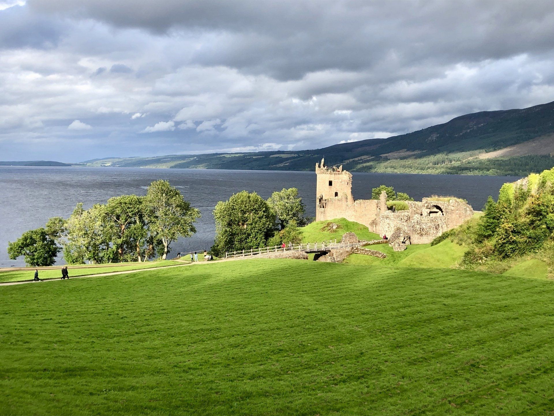 Das echte Highlight des Tages kommt aber nach diesem ca. einstündigen Besuch. Es sind von hier aus nur wenige Meter zur besagten Ruine, dem Urquart Castle. Die Burg ist sehr alten Ursprungs: "Erste Besiedlungsspuren des Ortes gehen bereits in die Zeit vor dem Besuch des Heiligen Columban im 6. Jahrhundert zurück. Im Adomnán’s Life of Columba wird ein Vorläufer der Festung als Wohnsitz eines piktischen Adeligen erwähnt. Auf dem Gelände wurden zwar bei verschiedenen Ausgrabungen entsprechende Artefakte gefunden, ein früher vermutetes Piktisches Fort konnte jedoch bisher nicht nachgewiesen werden. ..."
