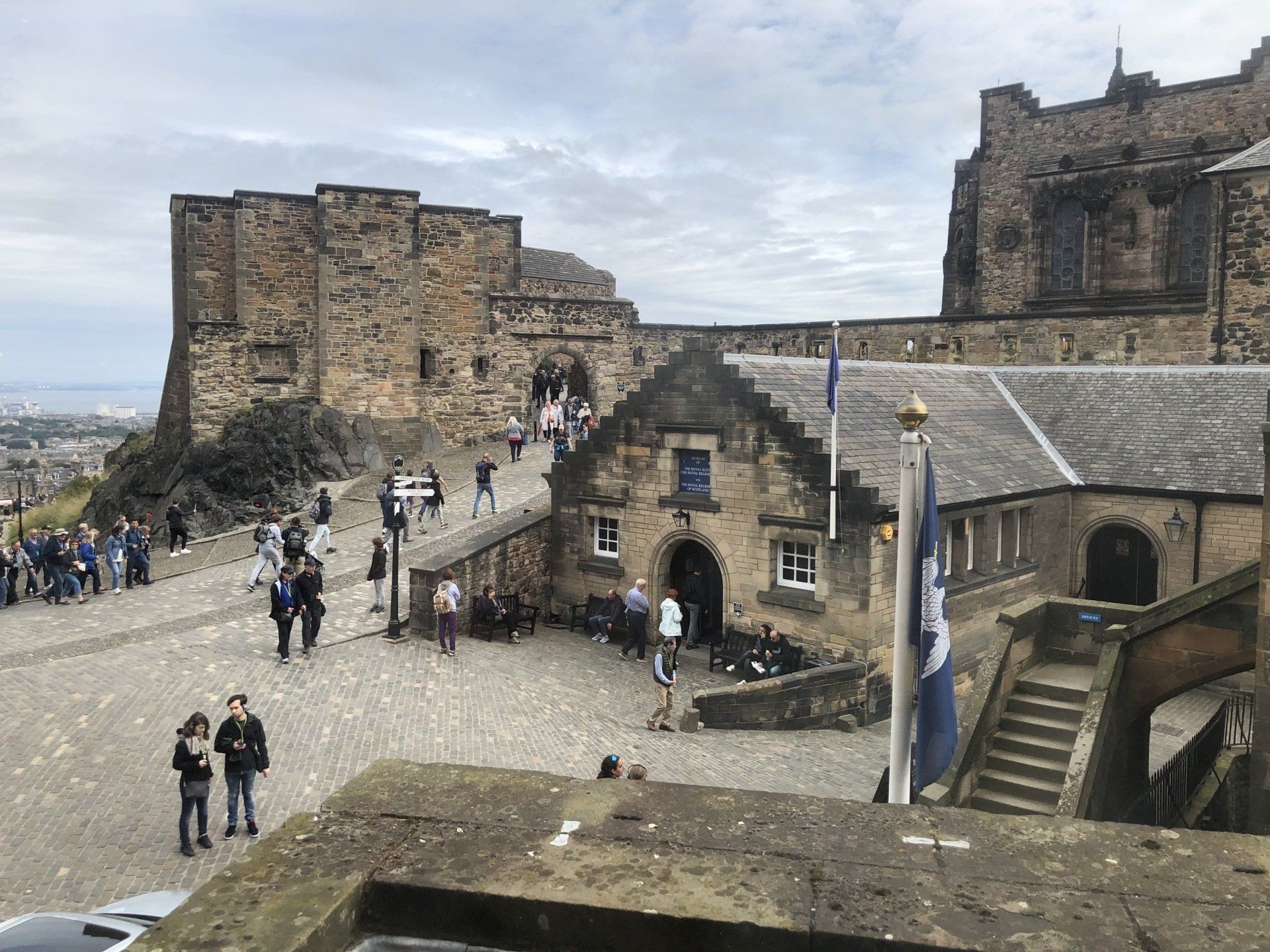 Um 8:30 bin ich in der City, das Wetter ist deutlich sonniger wie gestern und ich reiche das Bild der Burg mit besserem Wetter nach. Lässt sich gut von der Pincess Street fotografieren. Dann begebe ich mich zum Hop-on-Hop-off Bus und fahre ein paar Stops, bis ich zur Besichtigung des Schlosses aussteigen kann.