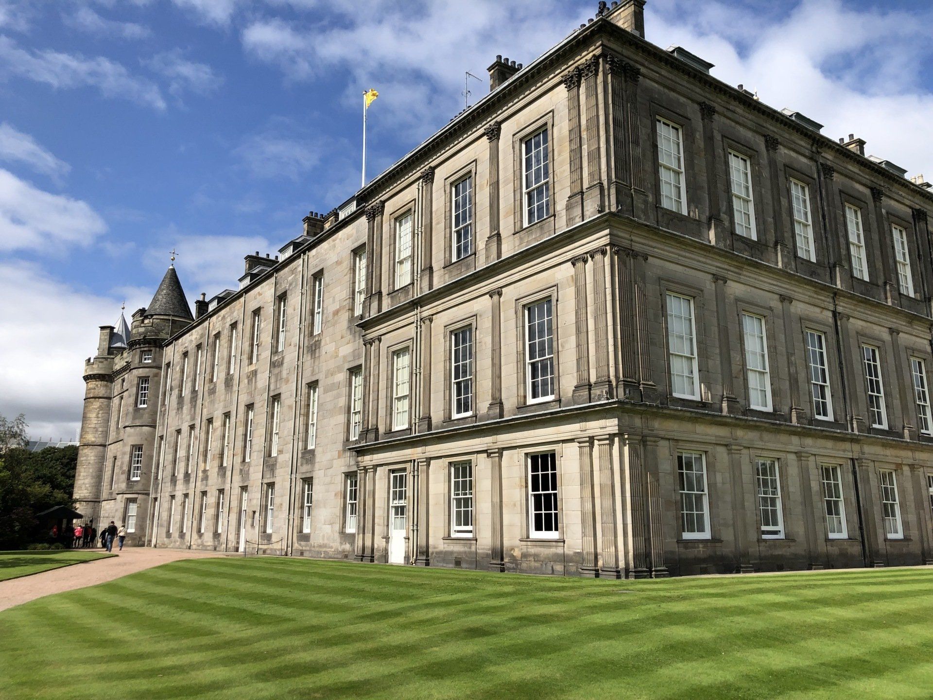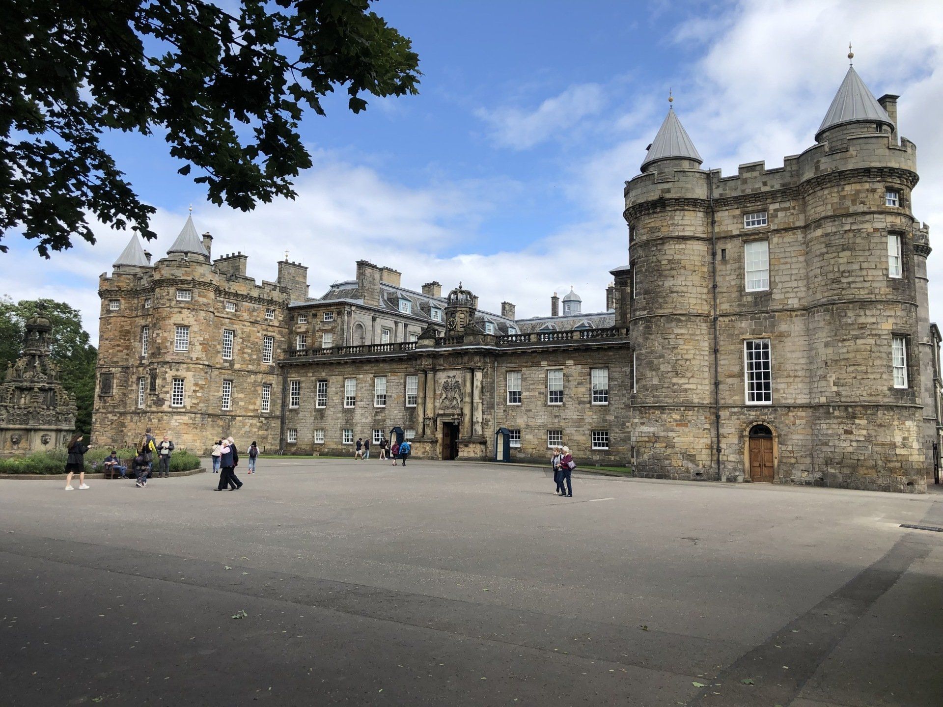 Eine kurze Info zu diesem Schloss: "Holyrood Palace oder Palace of Holyroodhouse in Edinburgh ist die offizielle Residenz der britischen Königin in Schottland. Der Palast befindet sich am östlichen Ende der Royal Mile, die von dort hinauf zum Edinburgh Castle führt. An das Schloss schließt sich der Holyrood Park an. Die Anlage steht seit dem 14. Dezember 1970 als Listed Building der Kategorie A unter Denkmalschutz. ..."
