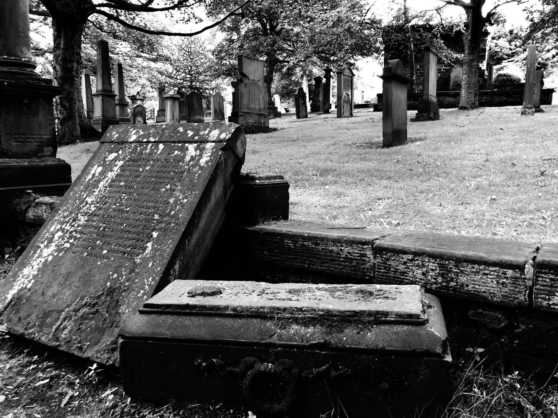 Trotzdem reicht es irgendwie für heute, die unsagbaren Menschenmassen nerven langsam und ich beschließe, mich zurückzuziehen. Die, die mich kennen, wissen, dass ich gerne über Friedhöfe schlendere. Ich komme an einem vorbei und er gehört definitiv nicht zur Perfomance des Festivals, ist ein Friedhof, der an einer Hauptstraße gelegen ist, aber eventuell in Vergessenheit geraten ist. Das kann ich mir nun auch nicht vorstellen. Ja jedenfalls würde er sich perfekt eignen, um auf diesem Gelände irgendwelche Horrorfilme zu drehen. Schiefstehende oder umgestürzte Grabsteine, alles total vermost, nicht gruselig, aber verwahrlost. Um den Effekt etwas besser darzustellen, habe ich diese Bilder in S/W konvertiert. Einige der Grabsteine weisen als Todesdatum 1746 oder in diesem Zeitbereich auf. Fast drei Jahrhunderte ist hier nichts passiert, natürlich bewegt sich die Erde und irgendwann muss es schief stehen oder umfallen - aber vielleicht ist es doch eine gruselige Touristenattraktion.