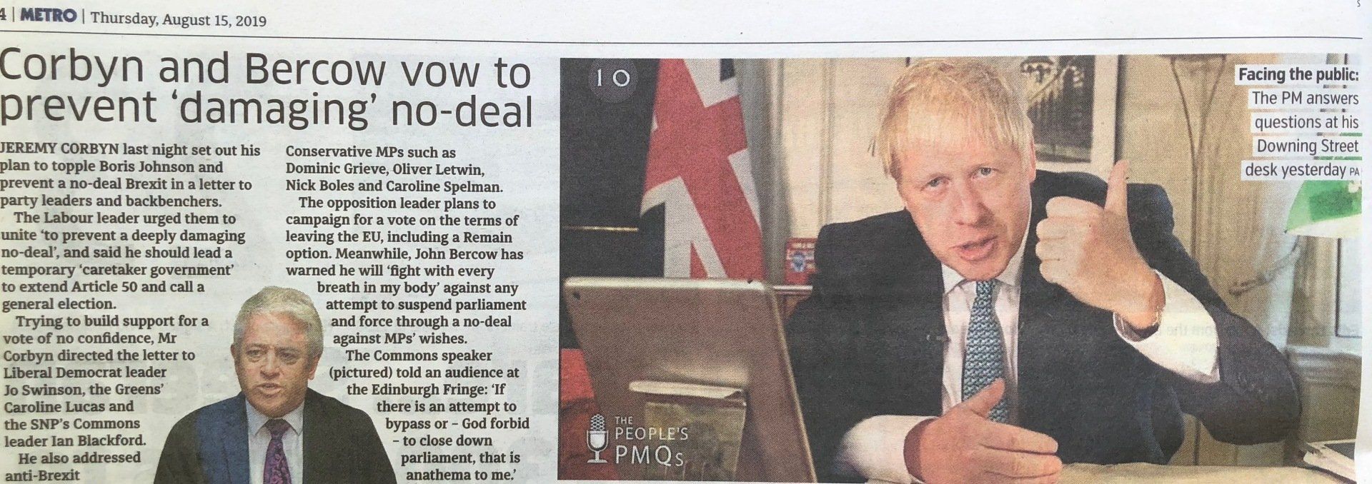 ... und jetzt zu guter Letzt kommt noch der heutige Brexit Beitrag ... diesmal von der Metro Zeitung aus Edinburgh. Ist wohl mit unserer Heute U-Bahn Zeitung zu vergleichen. Die Aufmachung ist ähnlich, nur ist das Format hier deutlich größer ...