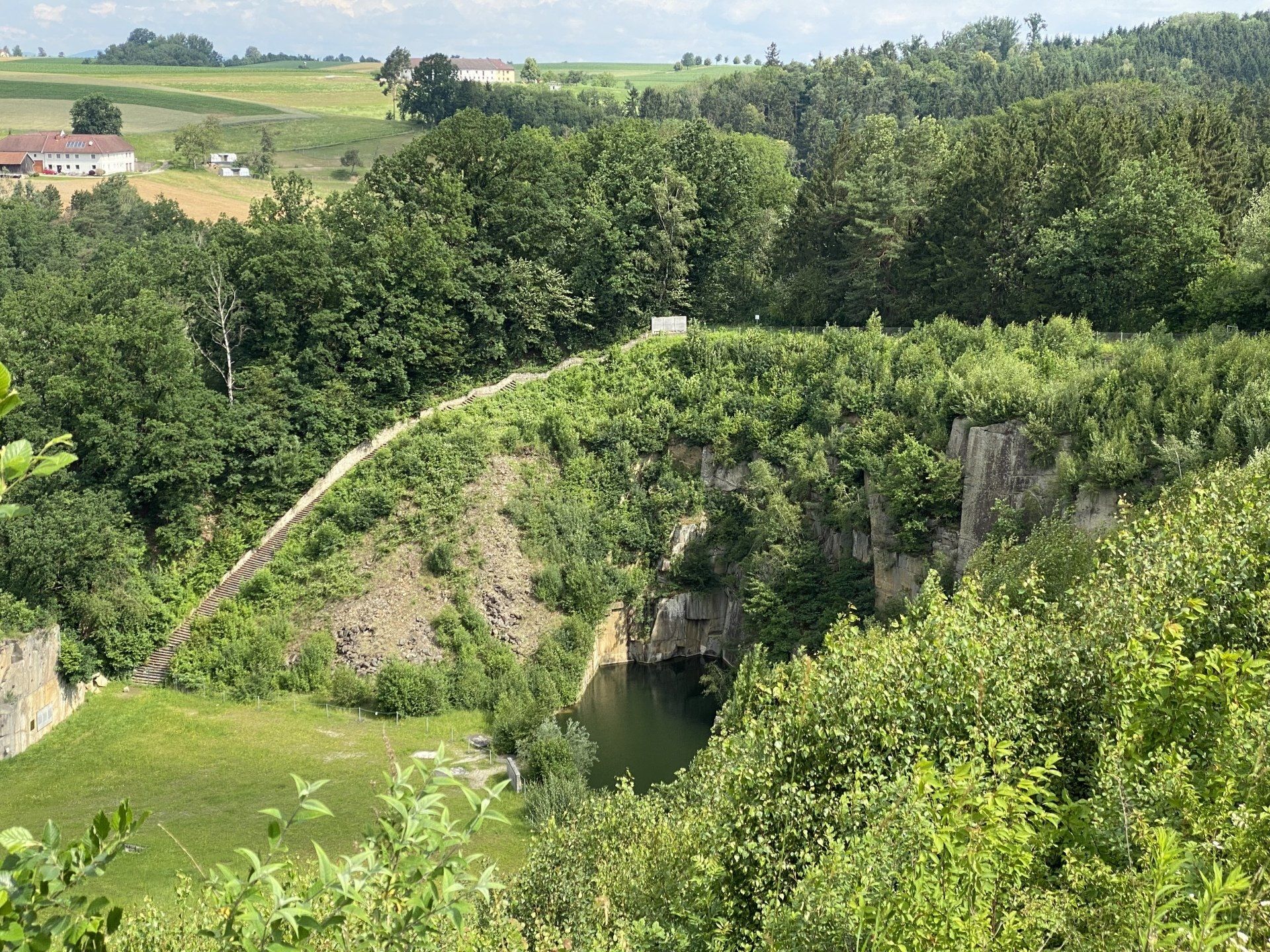 Der Weg vom Kopf der Todesstiege hinauf ins Lager führt teilweise knapp am Abbruchhang des Steinbruchs vorbei. Eine 50 Meter hohe, fast senkrechte Felswand wurde von der SS dazu missbraucht, Häftlinge hinabzustoßen, wo ihre Körper entweder durch den Aufprall auf dem Stein zerschmettert wurden oder sie im Regenwasserteich ertranken.
