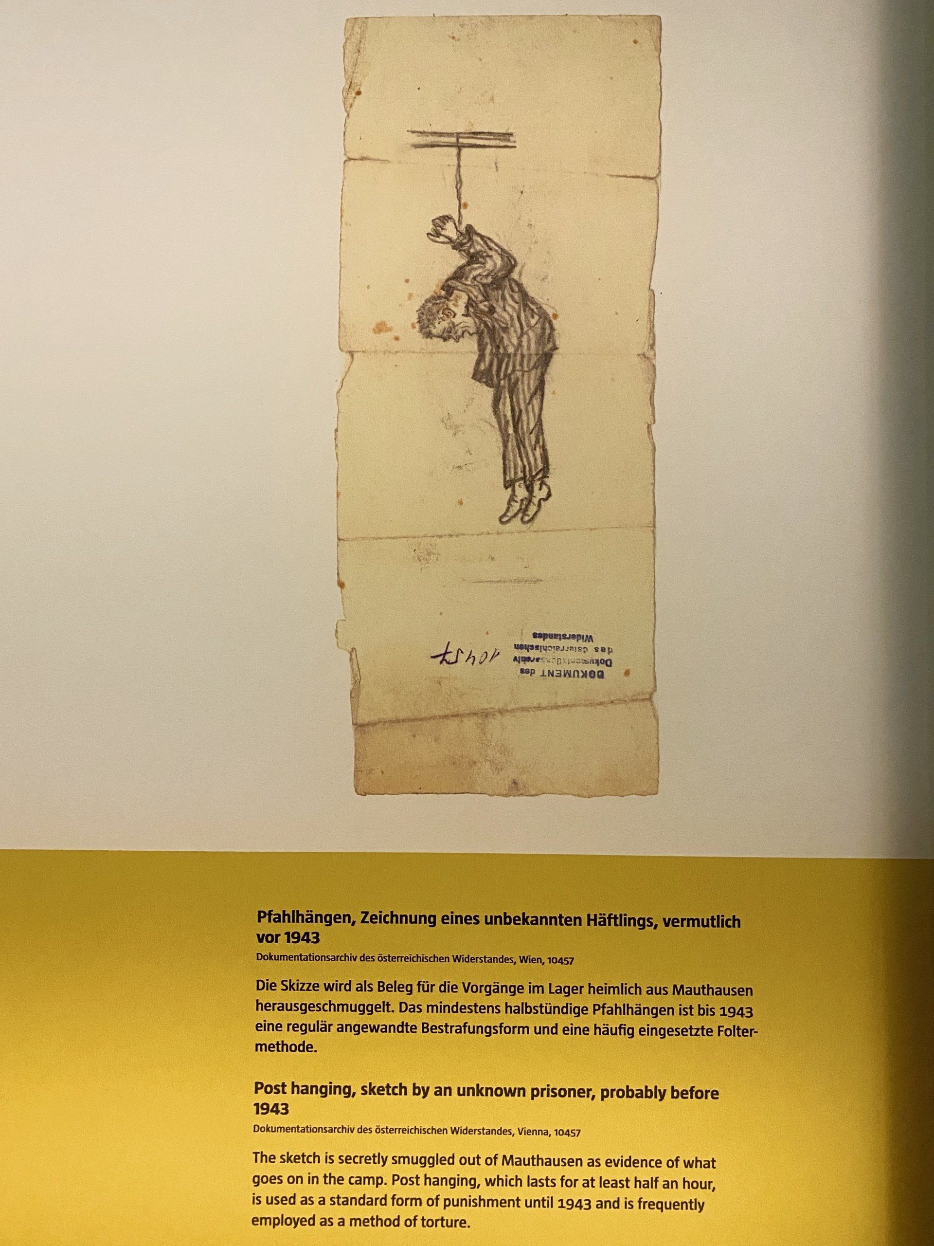 Das Untergeschoss zeigt die Dauerausstellung „Tatort Mauthausen: eine Spurensuche" und den "Raum der Namen" - auch hier findet ihr leider nur eine sehr unvollständige Darstellung - eine komplette Darstellung und das Hineinstellen aller Bilder würde diesen Blog vollkommen sprengen. Schaut euch die unten abgebildeten Zeichnungen der Häftlinge an, die Verarbeitung der Erfahrungen ist unfassbar ...