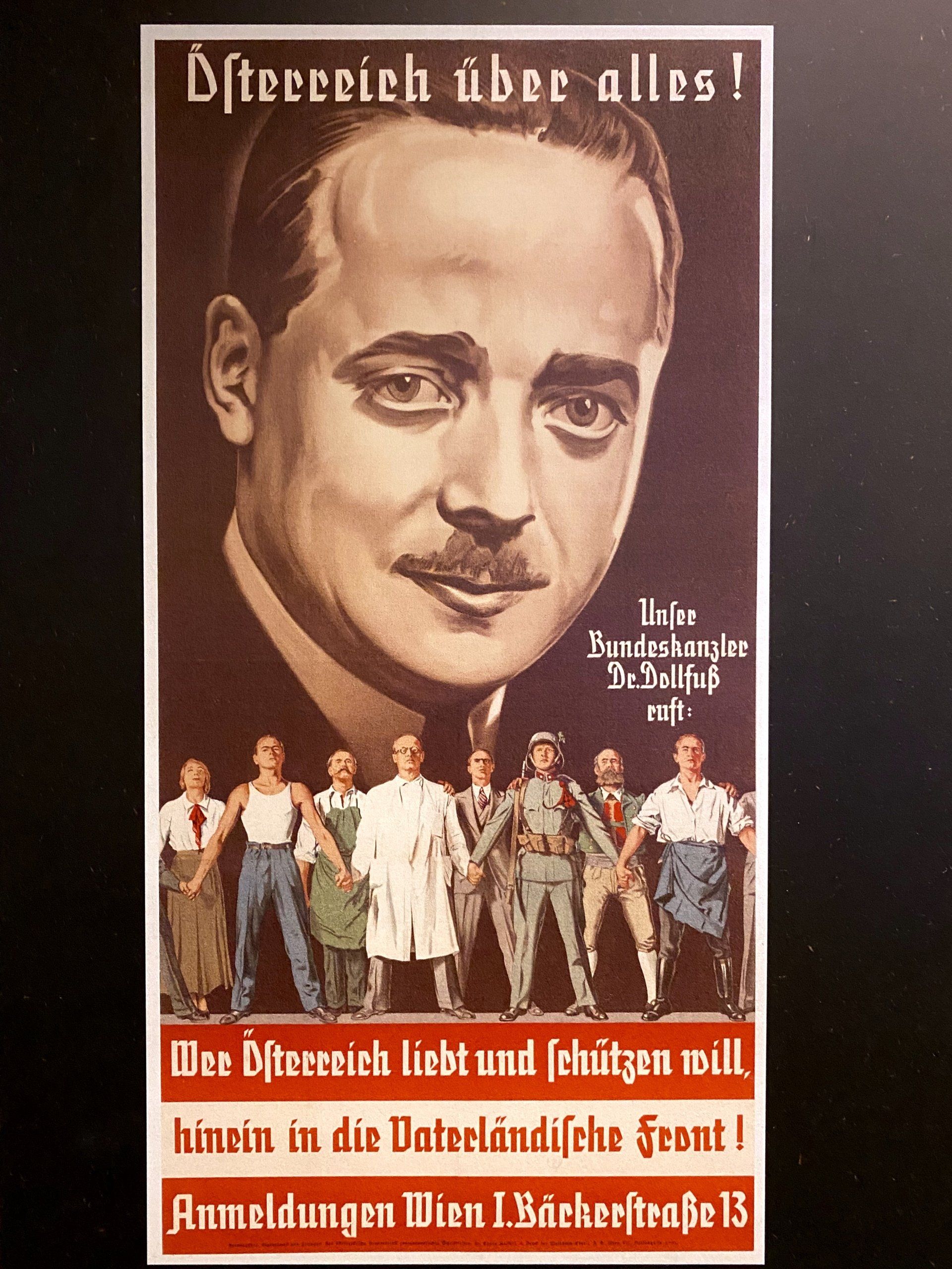 Bevor ich diesen Teil des Blogs schließe, werde ich noch zwei Abbildungen gegenüberstellen, die die Überschrift am Beginn des Eintrages nochmals aufgreifen.. Die Rolle von Bundeskanzler Dr. Dollfuß wird in der Geschichtsschreibung sehr konträr diskutiert, dieses Plakat ist deswegen auch im Dokumentationszentrum zu finden. Das Bild mit der Mütze ist mit dem Audiofile unterlegt ... bitte bis zum Ende anhören.