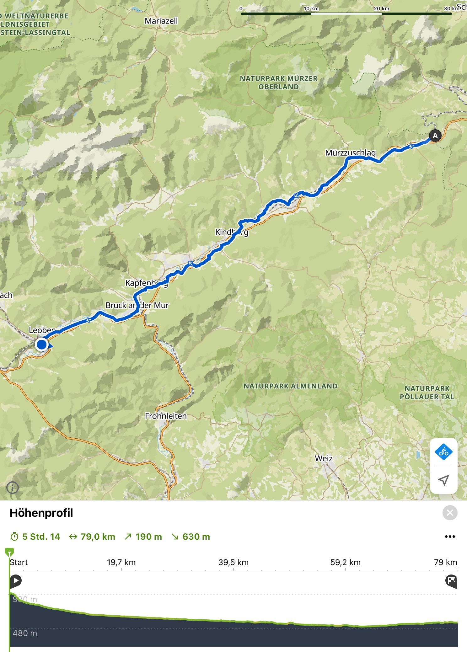 Gefahrene Strecke: 79 Kilometer, Fahrzeit: 3:51 Stunden, Unterwegs mit Pausen: 5:14 Stunden, Höhenmeter: 190m