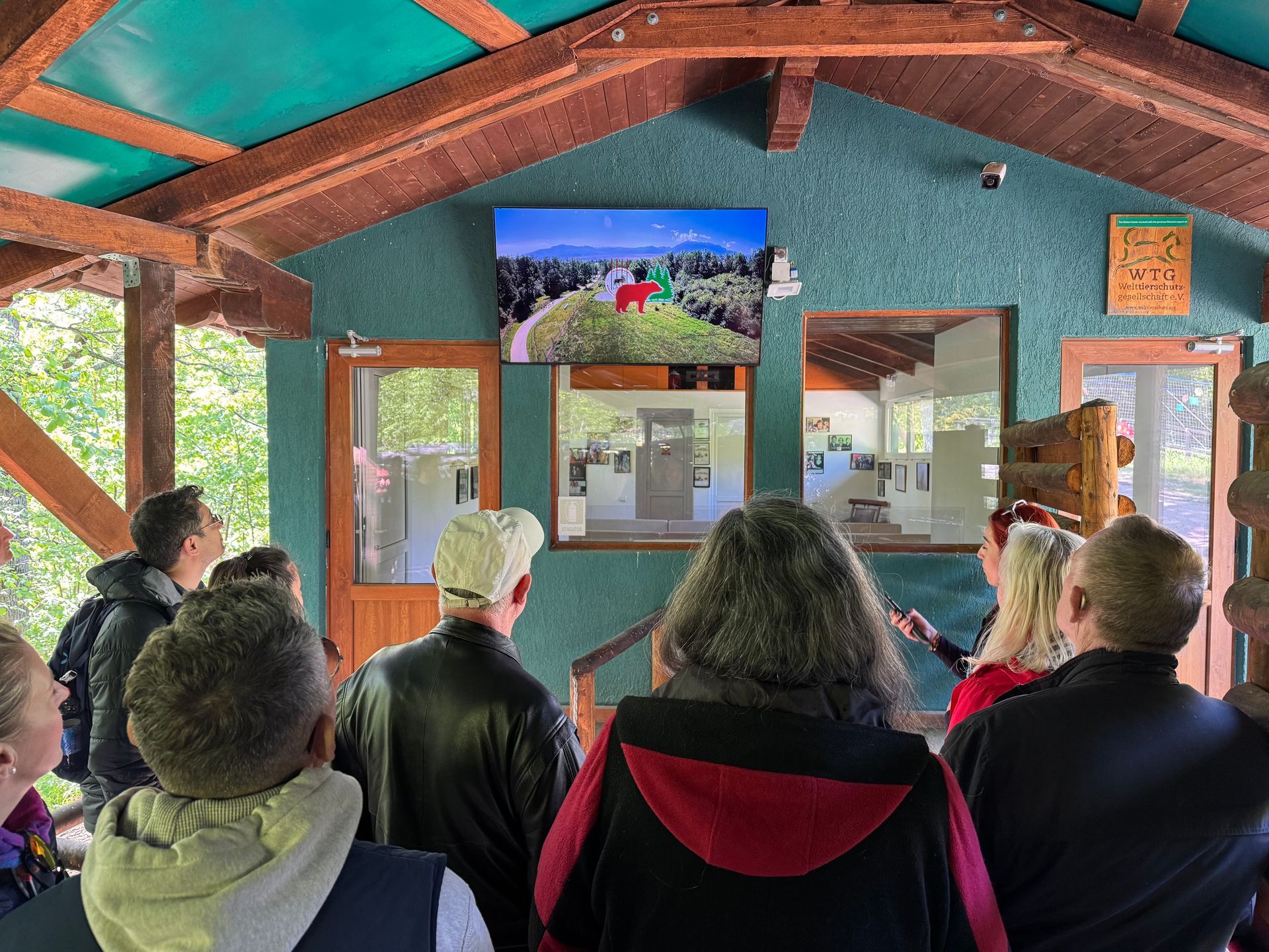 Die Führung beginnt mit vielen Erzählungen, so auch mit dem Hintergrund der Gründung des Reservats. "Im Jahr 1997 gründete die ehemalige Journalistin Cristina Lapis zusammen mit ihrem Ehemann, dem französischen Honorarkonsul Roger Lapis, mit Milioane de Prieteni in Brașov eine der ersten Tierschutzorganisationen Rumäniens. ... Lapis begab sich auf die Suche nach den Bären und fand drei von ihnen, Lidia, Cristi und Viorel, bei einem Restaurant in Poiana Brașov, sowie einen weiteren, Maya, in der Nähe von Schloss Bran. Alle vier Bären waren in Käfigen mit Betonboden untergebracht und chronisch unterernährt, wobei Maya im schlechtesten Zustand war. Sie war so schwach, dass sie kaum ihren Kopf heben konnte, als Lapis sie fand. Zähne und Klauen waren ihr entfernt worden, damit sie als Touristenattraktion keine Gefahr darstellte. Seit einiger Zeit hatte sich jedoch niemand um den Bären mehr gekümmert. In den folgenden Jahren fuhren Lapis und ihr Mann, unterstützt von Freunden, täglich zu den vier Bären, um sie zu füttern und Zeit mit ihnen zu verbringen. Nachdem sich ihr Zustand gebessert hatte, entwickelte Maya im Jahr 2001 neue Zeichen von Depression und starb am 11. März 2002. Auch Viorel starb." Das war also der Grundgedanke der Gründung. Dieses wird, bevor wir das Reservat betreten, noch in einem fünfminütigen, sehr emotionalen Film wiedergegeben.