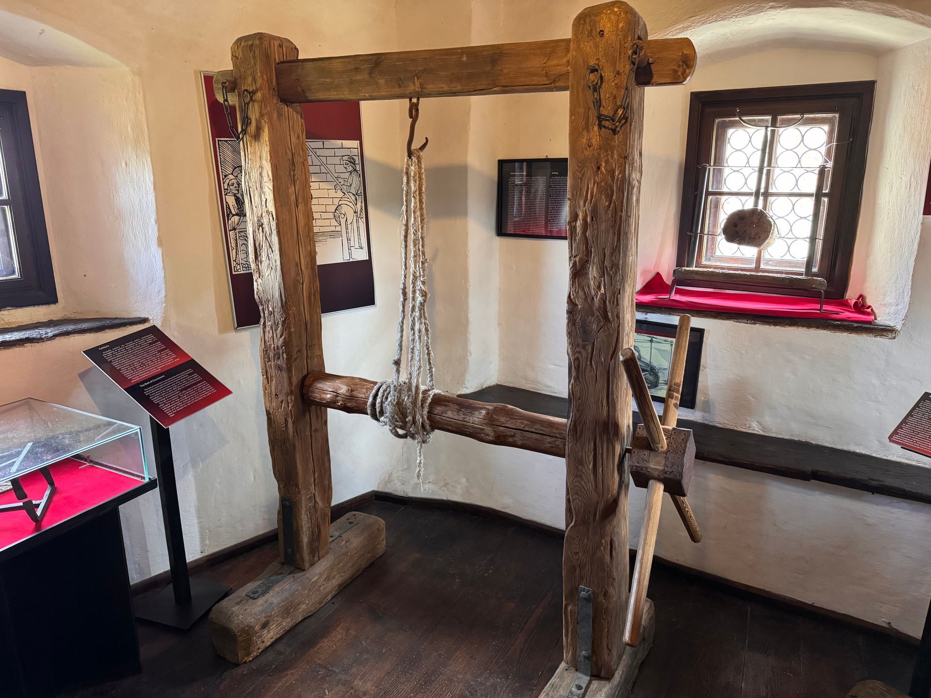 Ein weiterer Museumsteil ist den Legenden und Mythen um Vampire und insbesondere Graf Vlad Dracula gewidmet; auch eine eingerichtete Folterkammer kann besichtigt werden." alle Zitate Wikipedia, 20.5.2025.