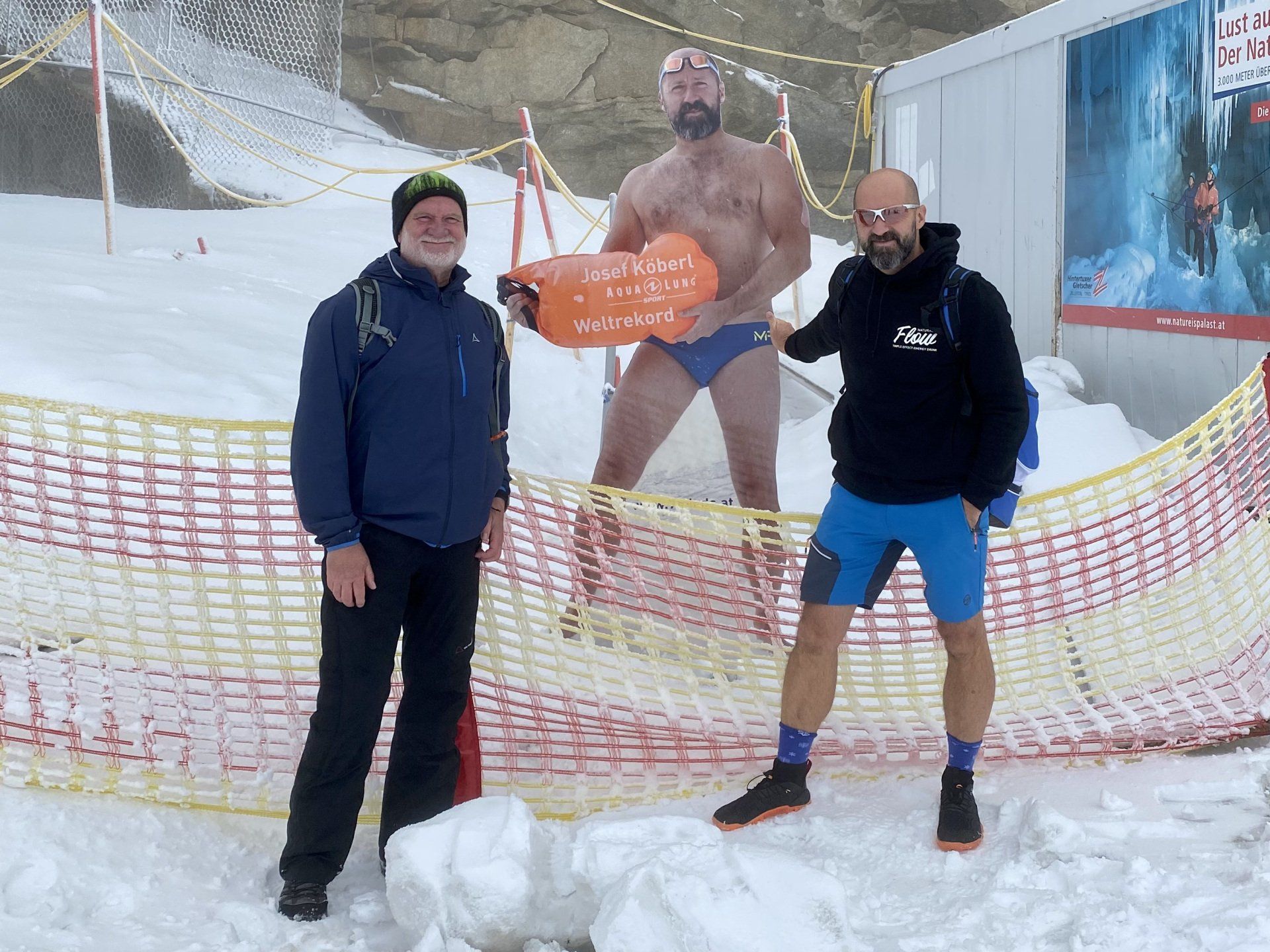 Genau genommen legt er dabei sogar noch einen dritten Rekord drauf, den er gar nicht erwähnt. Er wird dann der erste Österreicher sein, der die „Ice Zero“ geschafft hat, das sind 1609 Meter in einem Gewässer mit einer Temperatur unter einem Grad. Bisher ist das nur 13 Menschen weltweit gelungen. …“